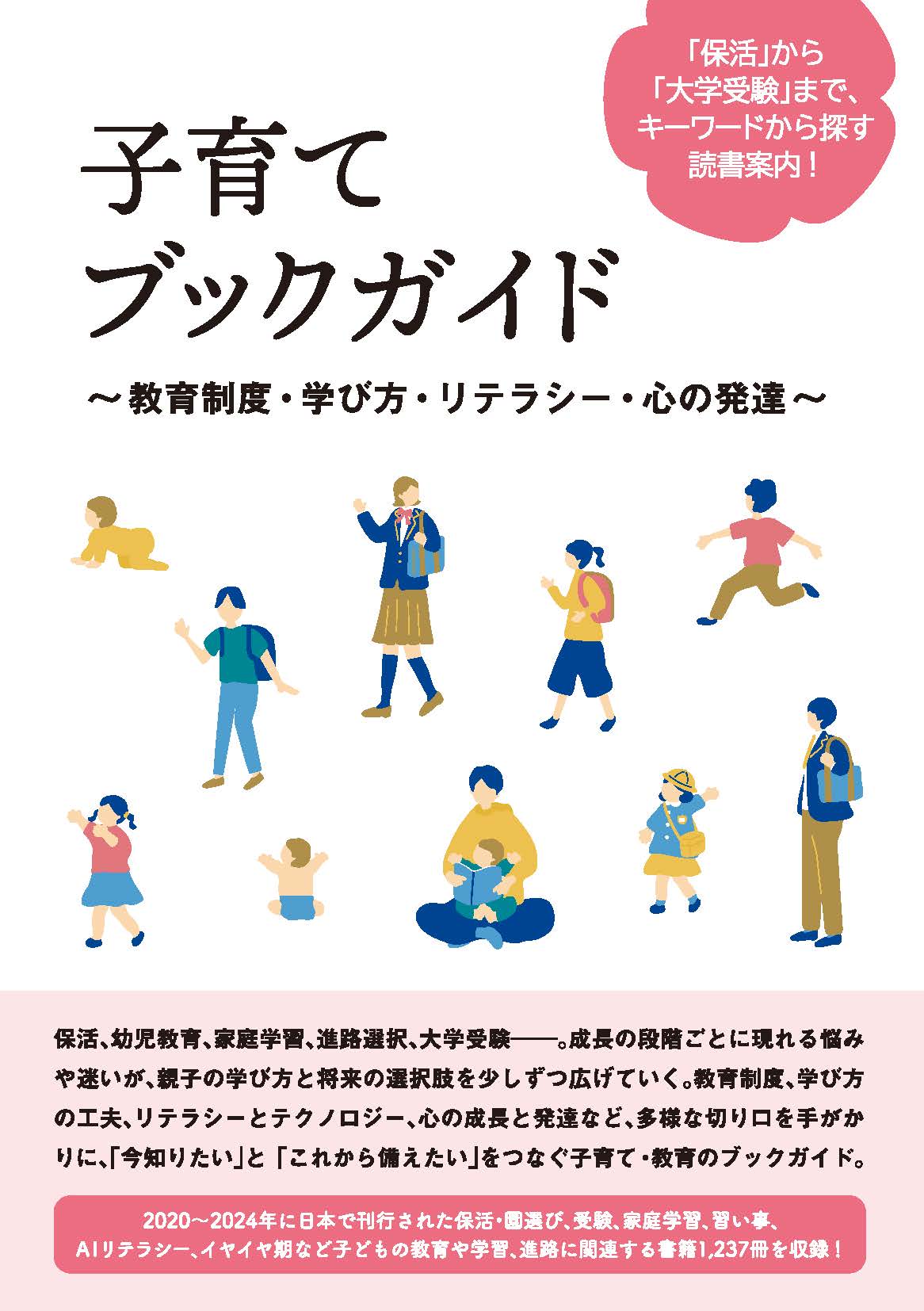 保活、幼児教育、家庭学習、進路選択、大学受験――。成長の段階ごとに現れる悩みや迷いが、親子の学び方と将来の選択肢を少しずつ広げていく。教育制度、学び方の工夫、リテラシーとテクノロジー、心の成長と発達など、多様な切り口を手がかりに、「今知りたい」と「これから備えたい」をつなぐ子育て・教育のブックガイド。